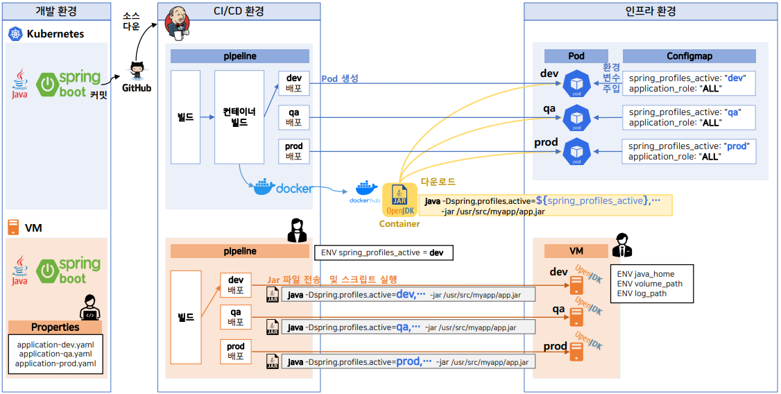 인프라 담당자는 환경별로 서버를 세팅해놓고 openjdk도 설치를 해놓는다. 이 때 필요한 환경 변수 값을 관리해야 한다.
