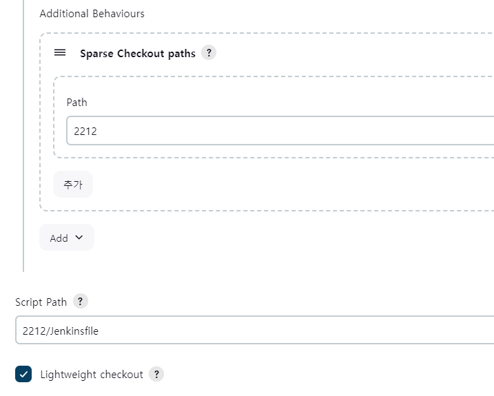 또 다른 방법으로는 동일한 내용의 script를 위 이미지처럼 jenkinsfile에 작성하여 git repository에서 관리하는 방법이 있다.