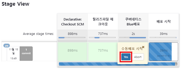 input message: '수동배포 시작', ok: "Yes"