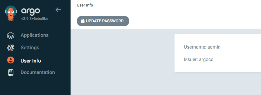 해당 초기 비밀번호를 입력해 로그인한 뒤 User Info > UPDATE PASSWORD로 비밀번호를 변경해준다.