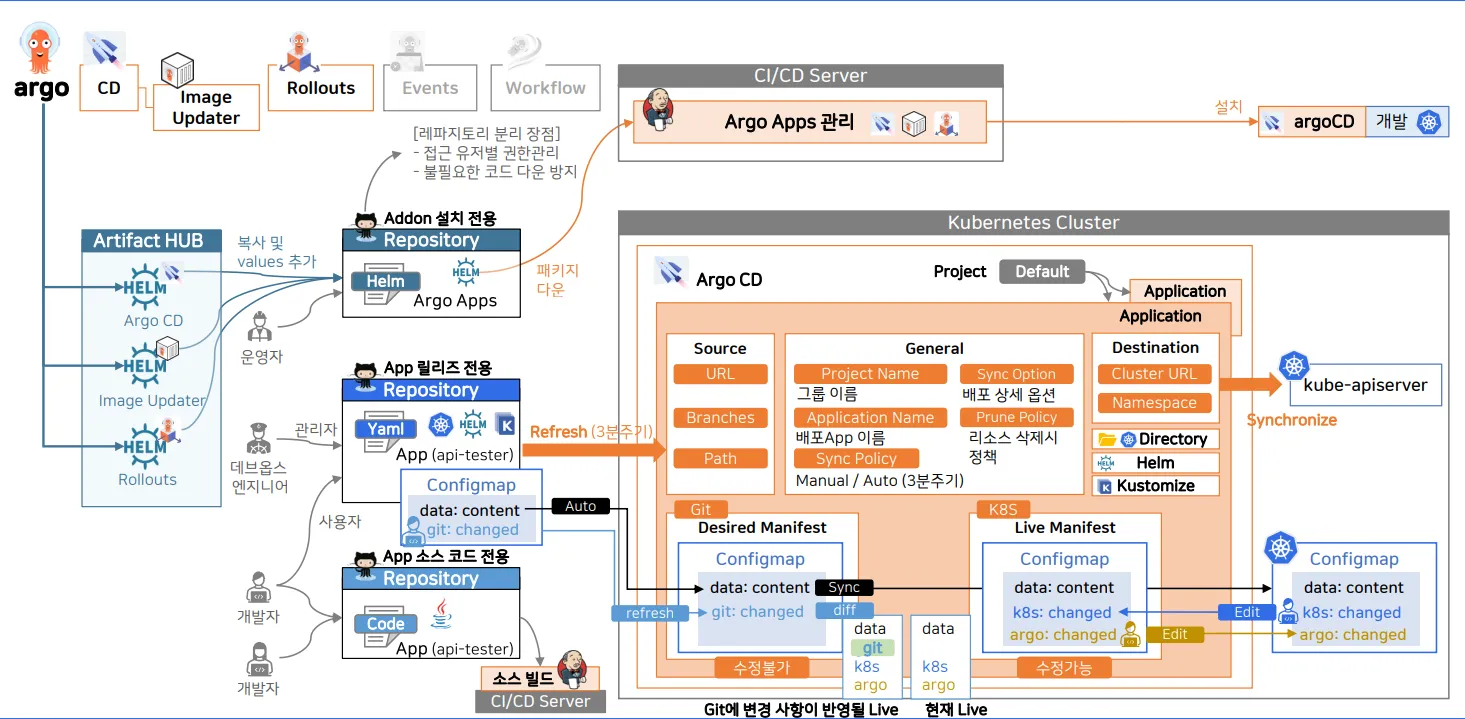 ArgoCD의 최종 목표는 Git에서 release 파일을 다운받아 쿠버네티스 클러스터에 배포하는 것이다.
