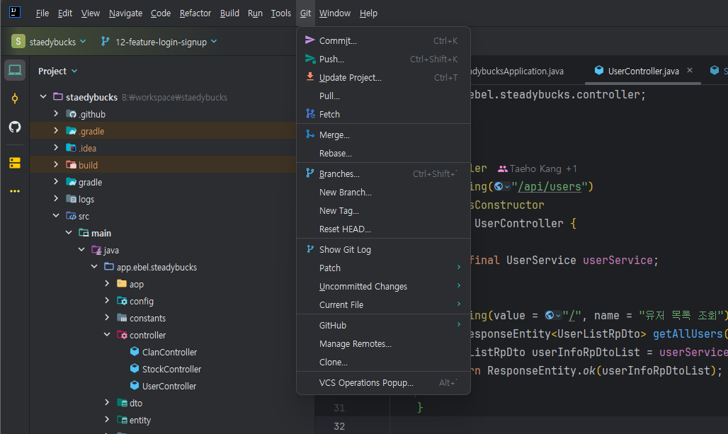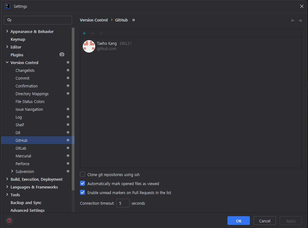 이후 Intellij에 내 Git과 GitHub을 연동한다.