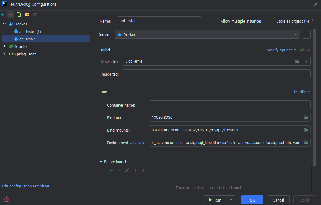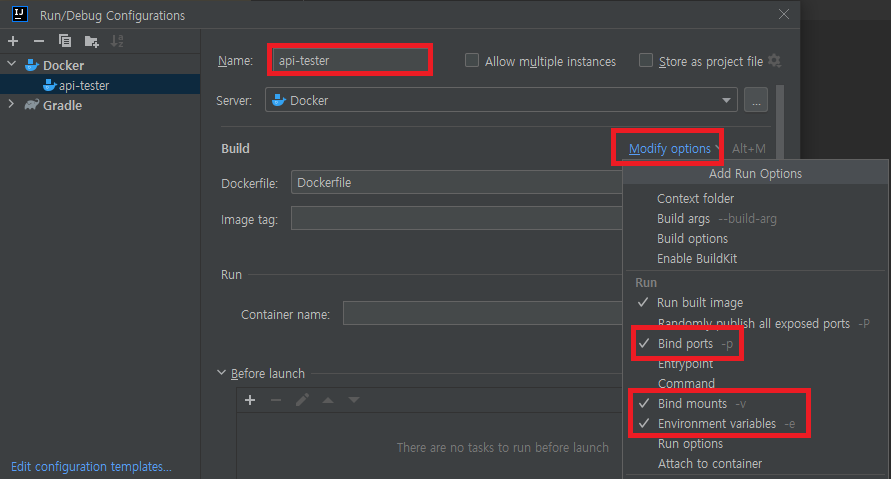Dockerfile : Dockerfile [자동 선택되어 있음] -> 안되어 있으면 직접 지정해주기