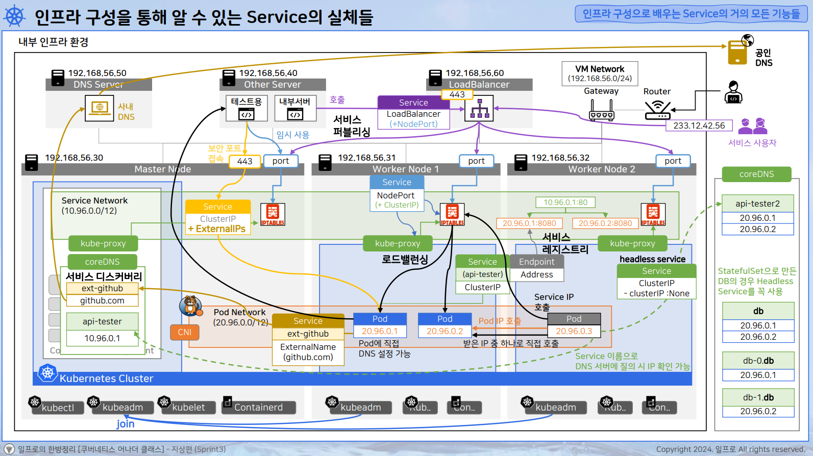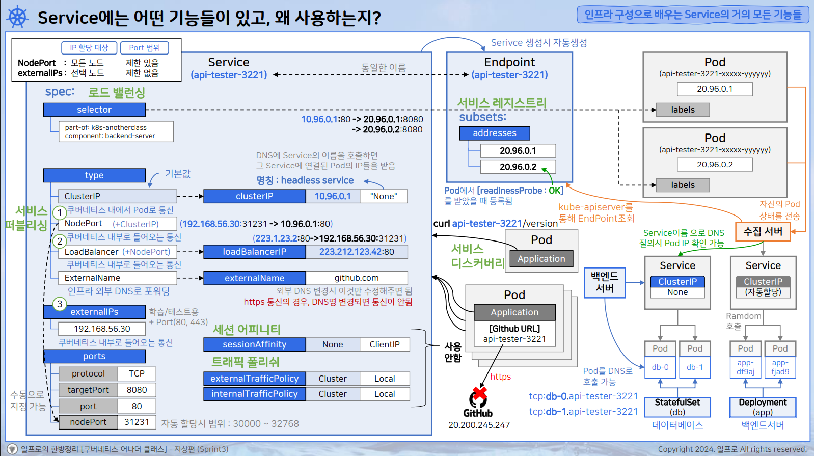 - 서비스 레지스트리: 서비스에 연결된 pod ip를 자동으로 관리